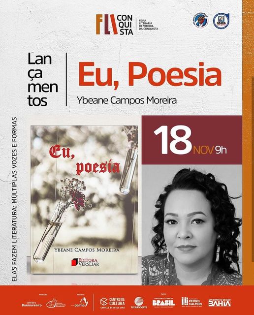 A poeta Ybeane Campos Moreira, que reside na cidade de Vitória da Conquista, fará o lançamento de seu novo livro de poesia intitulado “Eu, Poesia” durante a Primeira Feira Literária de Vitória da Conquista (FliConquista). O evento terá início nesta quarta-feira, dia 15 de novembro, e encerramento no domingo, dia 19.