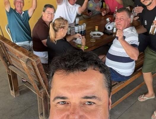 Quanto à foto acima, não sei qual era o objetivo. Parece que o prefeito, por tirar uma foto no formato selfie, chegou de intruso nesta mesa. Ou vocês imaginam outra coisa?