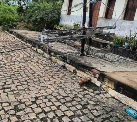 Um poste da rede elétrica do distrito de Ribeirão do Salto, pertencente a Itarantim, caiu em uma das ruas, neste domingo, 18 de janeiro e até essa terça-feira, 20 de janeiro a empresa responsável não havia concertado.