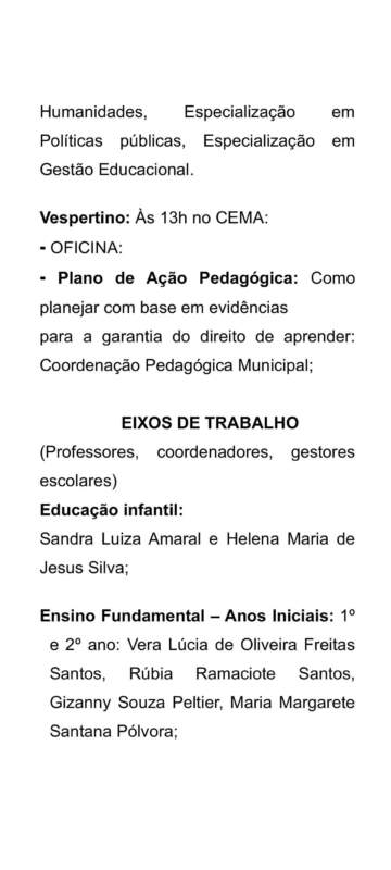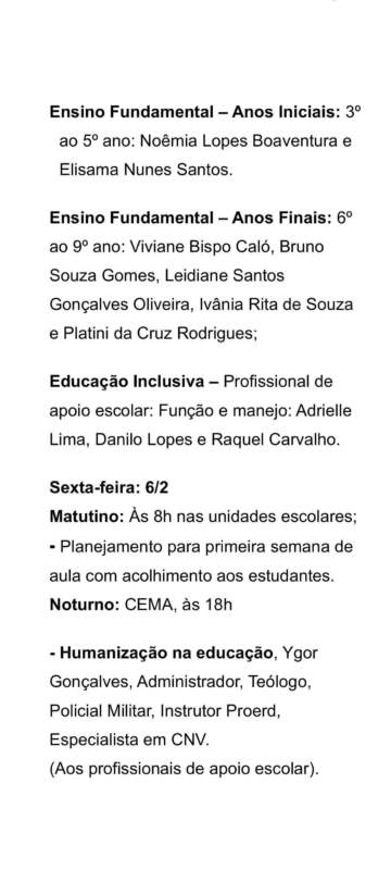 Finalizando a jornada, na sexta-feira, 6 de fevereiro, terá continuidade a partir das 8 horas, com trabalhos nas unidades escolares e uma programação de preparação para o retorno às aulas.