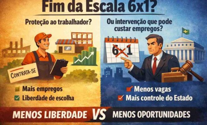 De tempos em tempos, o Brasil repete o mesmo caminho: aparece um problema real, surge uma proposta rápida para resolver e o Estado passa a decidir como as relações privadas devem funcionar. O debate sobre o fim da escala 6×1 segue essa lógica. A ideia parte de uma preocupação justa — o cansaço e a qualidade de vida do trabalhador — mas deixa de lado um ponto importante: a liberdade de escolha.