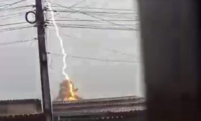O estrondo do raio deu para ser ouvido na maioria dos bairros da cidade e deixaram muitos moradores assustados.