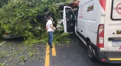 Ambulância de Itarantim se envolve em acidente após queda de árvore em Itabuna