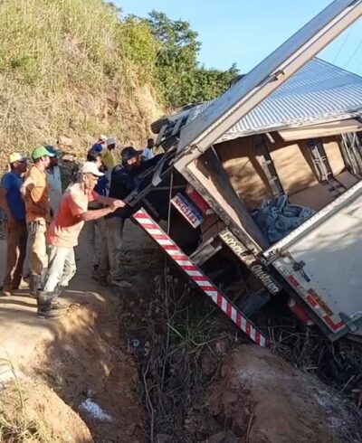 Vídeo mostra caminhão caído em cratera na região da Goia por conta das péssimas condições das estradas