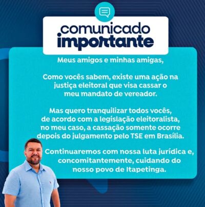 O vereador de Itapetinga, Diego Rodrigues, do PSD, conhecido popularmente como Diga Diga, publicou um comunicado em suas redes sociais após a reportagem (TRE ... -