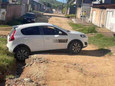 Carro cai em cratera em Itarantim e situação mostra situação das ruas da cidade