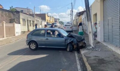 Acidente é registrado em Itarantim, carro colide com um poste próximo ao mercado municipal