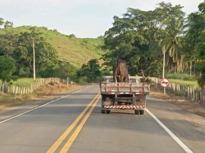 Quando pensamos que já vimos de tudo, aparece essa! Vaca é levada em carroceria na BR-330