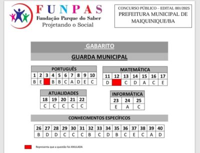 A realização do concurso público da Guarda Municipal no município de Maiquinique, no médio sudoeste da Bahia, foi marcada, segundo informações ao site Crônicas ...