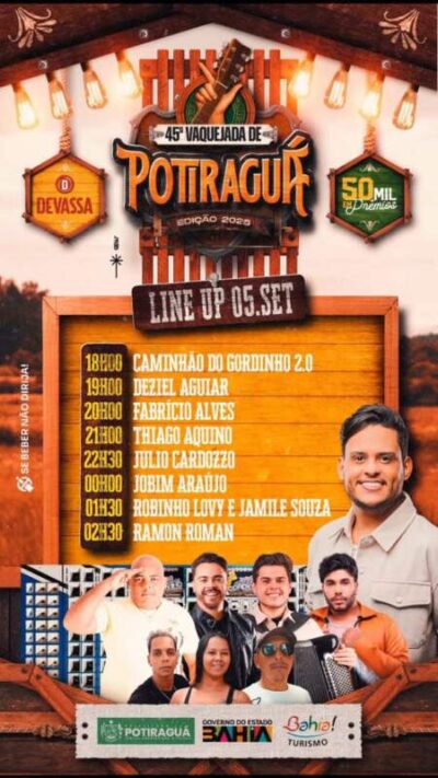 A Prefeitura de Potiraguá divulgou a programação completa de atrações que irão se apresentar a partir desta sexta-feira, 05 de setembro na 45ª Festa ...