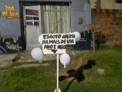 Morador de Itarantim coloca placa comemorando um ano e meio de esgoto aberto em sua rua