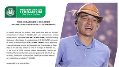 Itarantim: Cantor João Gomes custará aos cofres públicos R$ 500 mil pela apresentação