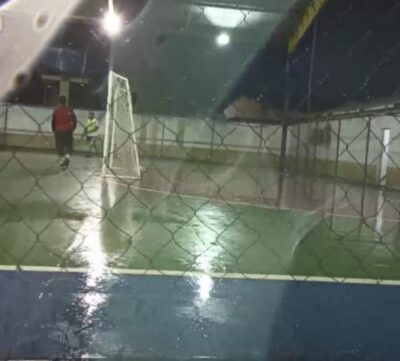 Quadra coberta, mas se chover não pode jogar, chuva interrompe partidas esportivas