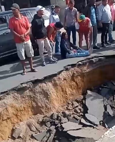 Vitória da Conquista: Mulher é “engolida” por cratera que se abriu em avenida da cidade