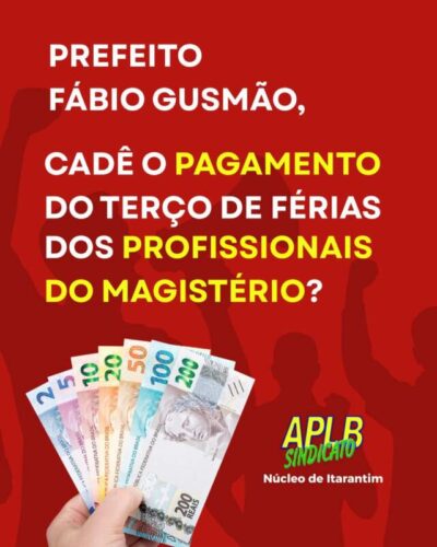 O Sindicato dos Profissionais da Educação, APLB Núcleo Itarantim, está exigindo do prefeito, Fábio Gusmão, o pagamento do Terço de Férias, que ainda não ... -