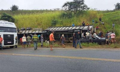 Carga de cerveja é saqueada após caminhão tombar em cidade da Bahia