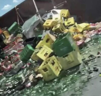 Caminhão de cerveja tomba próximo à cidade de Itambé