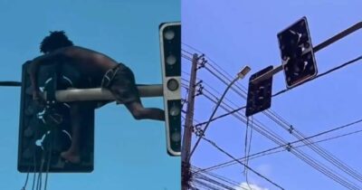 Bahia: Homem é flagrado em plena luz dia roubando cabos de semáforo