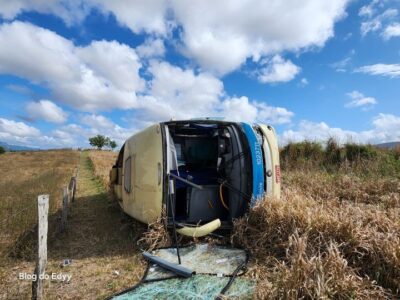 Região: Ônibus da Novo Horizonte tomba próximo a Potiraguá, outro acidente em Guanambi duas pessoas morreram