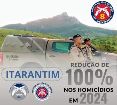 A Polícia Militar, 5º Pelotão da 8ª CIPM divulgou nesta quarta-feira (21) que Itarantim, cidade localizada no território Médio Sudoeste, alcançou 100% na redução ... -