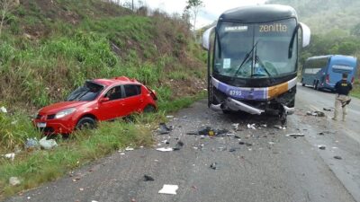 Sul da Bahia: Tristeza, quatro pessoas morrem em grave acidente na BR/101 numa colisão entre um carro de passeio e ônibus