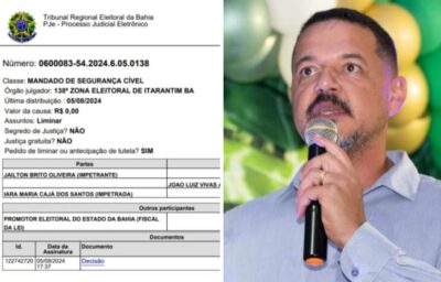 Itarantim: Prefeito pode ter candidatura cassada por conta de fraude em convenção, denúncia foi feita na justiça