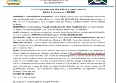 Um contrato firmado pela Prefeitura de Maiquinique, no Médio Sudoeste da Bahia, para a prestação de serviços médicos no hospital municipal tem gerado questionamentos ... -