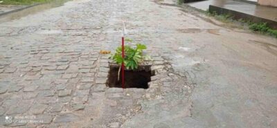 Em Itarantim buraco provocado pelas chuvas em meio de rua oferece perigo