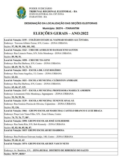 ELEIÇÃO] Em Itarantim confira locais de votação que irá acontecer no próximo domingo