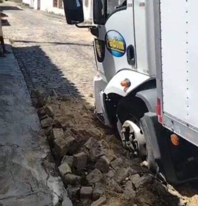 POTIRAGUÁ] Em péssimas condições, caminhão fica atolado em rua da casa do prefeito de Potiraguá