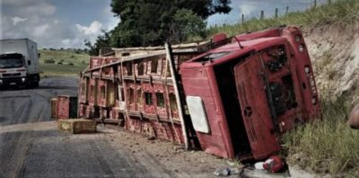 Caminhão com aves que seguia destino Potiraguá tomba na BA/270