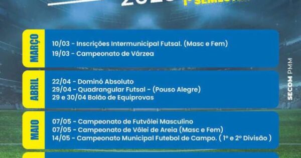 A Secretaria de Cultura, Esportes e Lazer da cidade de Maiquinique divulgou nesta quarta-feira (15) o calendário esportivo deste primeiro semestre na cidade, de acordo Secretário de Esporte Cultura e Lazer, João Vitor, este é apenas o primeiro semestre e que no segundo muitas novidades virão no calendário esportivo municipal. O secretário ainda tem informado ... -
